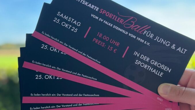Sie sehen schick aus, sind 21 Zentimeter breit, 9,9 Zentimeter lang und garantieren den Zugang zu einem fantastischen Event: Die Eintrittskarten für unseren Sportlerball sind da und können ab sofort bei allen Vorstandsmitgliedern bestellt werden. Eine Karte kostet wie gehabt 15 Euro. Seid schnell und sichert euch jetzt euer Ticket für die große Sause am 25. Oktober in der großen Sporthalle!
